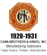 In 1948 Cann expands it's printing , publishing, lithographing and binding business by adding licenses for Wire-o, Cerlox Plastic, Tauber Tube Plastic - Tauber Ring, Wire Spiral and Plastic Spiral, Tallyho and Mult-o Ring Loose Leaf System of Bindings, along with machinery and a building at 29th and Tatnall Streets.