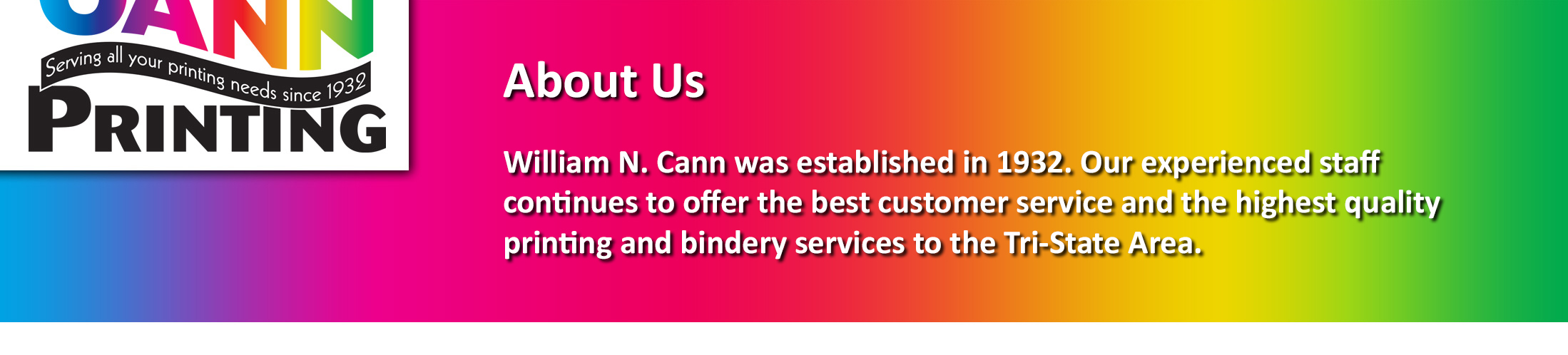 Today, Cann Printing is a totally modern, printing company providing digital pre-press and the same friendly, knowledgeable service to clients locally and around the country that they have for over 65 years.